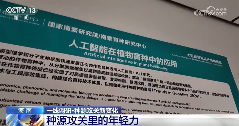 中国农科院国度南繁研究院表型立异团队博士后刘帅兵称:“这是我们勤奋的标的目的,通过从动化手艺,包罗表型判定手艺、遥感手艺、计较机手艺,通过这些多学科交叉当前,一整个流程化的手艺或者说科学系统,我们要完全从动化。”现在,种业复兴的道上不只有资深的育种学家,还有更多新面目面貌的插手,他们正在焦点种源攻关上阐扬了什么感化?继续来看。正在中国农业科学院国度南繁研究院的走廊里,记者看到,机械深度进修、大数据预测、人工智能使用,不少代表着前沿科技的词汇呈现正在科研团队和科研项目标名字中。一个个跨学科的青年人才通过精准培育、定向招引,插手到“爆改”保守农业的步队。