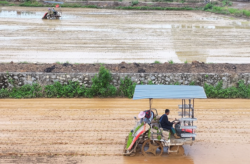 春雨纷飞,恰是耕种好时节。广西宾客市合山市河里镇的稻田里,几台插秧机正杂乱无章地功课。不远处的河里镇移平易近村集体经济项目水稻财产核心大米加工场房内,从动化碾米机轰鸣做响,一袋袋印着“洛灵湖壮乡米”的精品大米整拆待发。