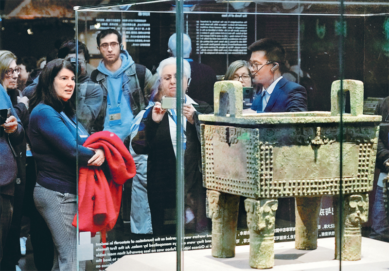 首届世界古典学大会于2024年11月6日至8日正在举行。图为2024年11月6日,300余位中外嘉宾来到中国考古博物馆参不雅“考古取中汉文明溯源展”,该展是本届世界古典学大会推出的配套勾当之一。 记者 张晨霖/摄?。
