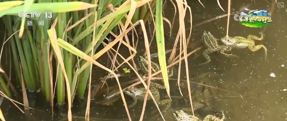 小鸭子们喜好吃稻谷,它们会不会把稻田里的谷子也吃掉?为了防止如许的环境发生,这里采用的模式是“鸭蛙稻”模式,5月放鸭、7月放蛙,正在水稻进入抽穗期,也就是有稻谷的时候,15万只小青蛙就会来接力办理这片农田,替代杀虫剂。