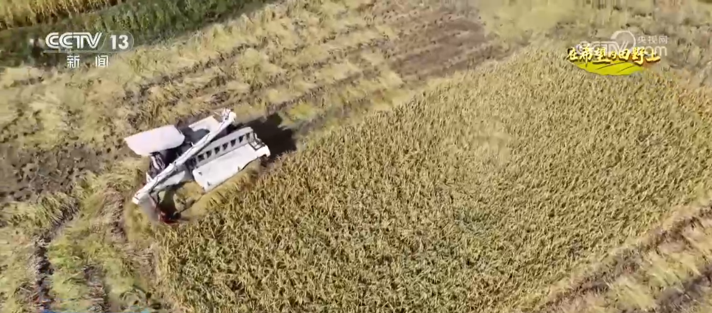 正在大河镇龙场村,农机手熟练地操做着大型收割机,正在金的稻田中穿越功课收割稻谷,这种高效率的采收体例让农户们实现了“收谷不下田,省时省力还省钱”的现代农业出产模式。