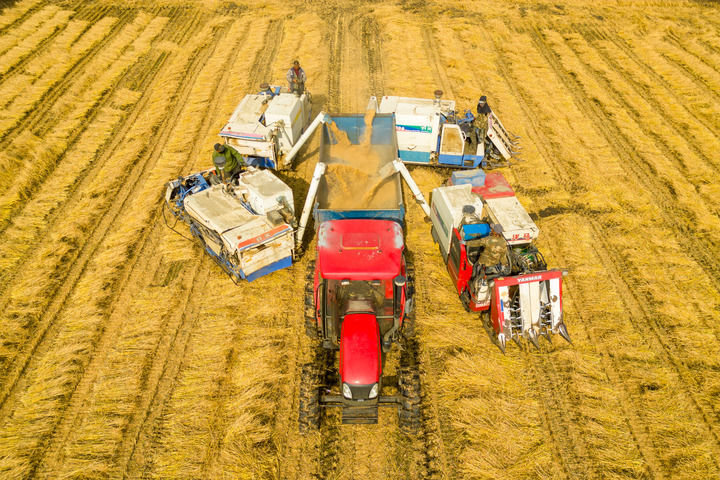 2024年9月22日,农业机械正在省市朴直县的稻田中进行收成功课。记者 王松 摄。