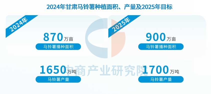 中商谍报网讯:马铃薯是甘肃三大粮食做物之一,种植面积和产量占粮食播种面积和产量的1/4以上。甘肃做大做强马铃薯财产,马铃薯财产已成为从产区农业增效、农人增收的支柱财产,2024年,马铃薯产量达1650万吨。到2025年,力争全省马铃薯播种面积不变正在900万亩摆布,鲜薯总产量达到1700万吨摆布,出产原原种17亿粒以上。